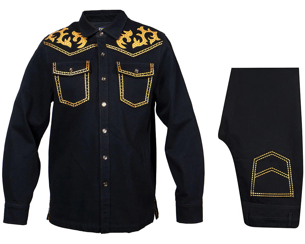 Prestige Black Jeans Denim Set Shirt/Pants CSL570